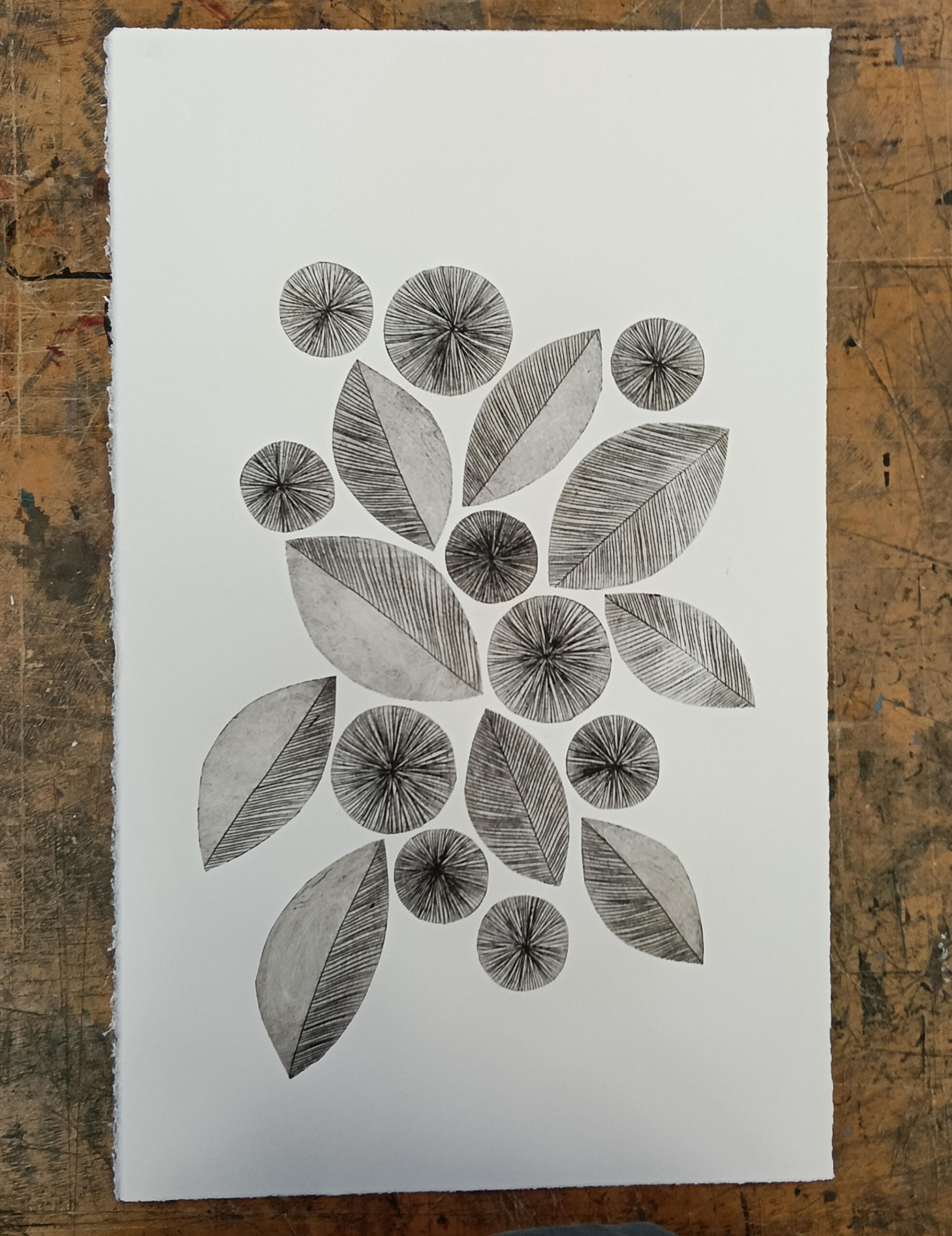 I am an artist based in Ĺtepoti Dunedin, working primarily in collagraph and drypoint printmaking. My practice weaves into the borders of family and working life, often engraved at my kitchen table while cartoons blare in the background. I enjoy working in layers and experimenting with plate surfaces and limits.